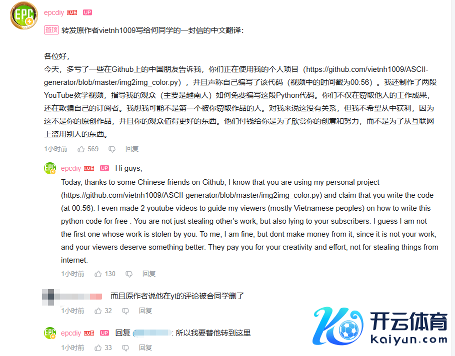 11月20日,着名科技up主“epcdiy”转发了该开源现象原作家 vietnh1009 写给何同学的一封信: