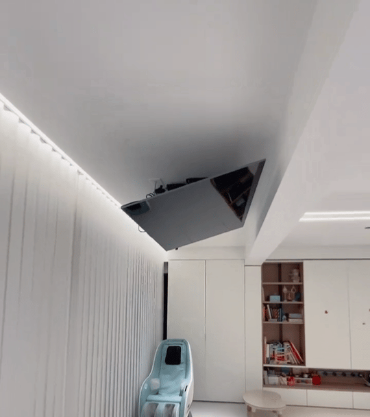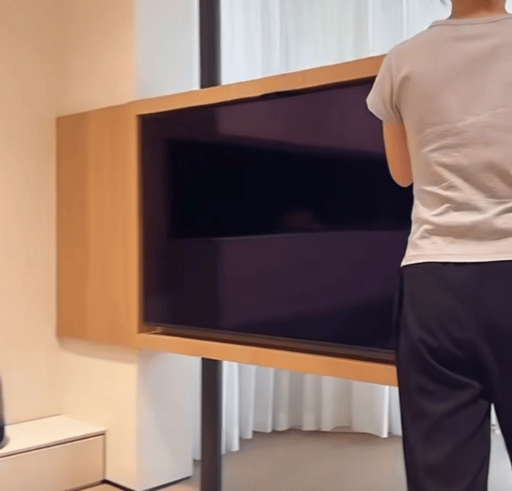 若是过错的双方,齐有看电视的需求,还可以讨论这种可旋转的悬浮电视墙,旋转方式,有手动的,也有电动的!