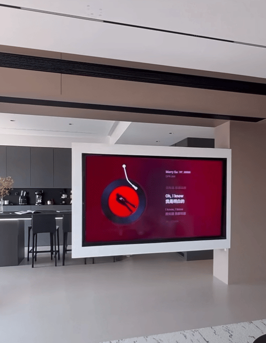 这一面旋转电视墙,一共奢靡4000多,与许多平凡的电视墙奢靡是颠倒的,然而它是过错的两端齐可以看电视,旋转提醒还可以接入智能家居,语音、敲击……方式齐可以旋转!