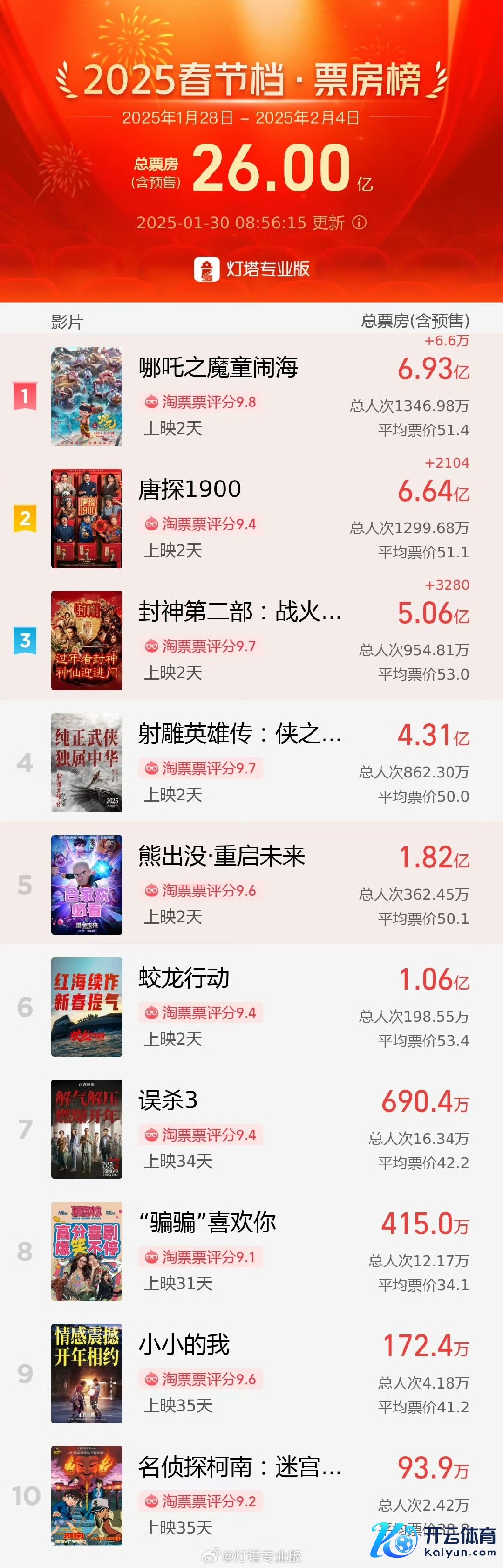 2025春节档总票房破26亿2025春节档总票房破26亿