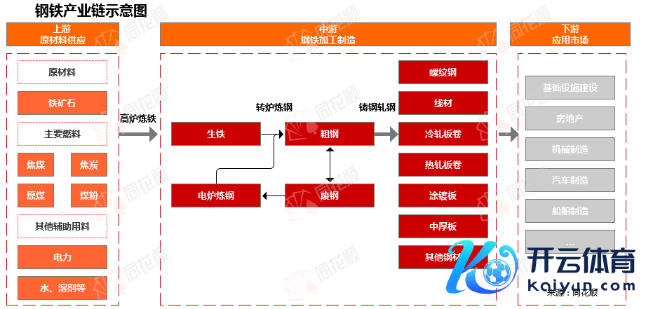 我国钢铁行业产业链上游主要为原材料,其中资本占比约在70%到80%之间,包括铁矿石选用和燃料制备,铁矿石占比约为40%到55%。从钢铁行业需求散播看,普钢卑劣需求主要贴近在建筑业,亦然扫数这个词行业需求占比最高的部分,占比达到50%。特钢、钢管、型钢等品种在铁路成立、石油化工、工程机械、汽车等行业范围多数交叉使用。