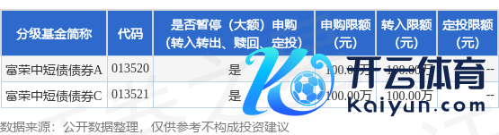 本站音尘,9月27日富荣基金搞定有限公司发布《富荣中短债债券型证券投资基金2025年"国庆"假期前暂停代销渠谈大额申购(含诊治转入、如期定额投资)业务的公告》。公告中请示,为(1)笔据《国务院办公厅对于2025年部分节沐日安排的告知》及沪深证券来往所休市安排,10月1日(星期三)至10月8日(星期三)休市,10月9日(星期四)起照常开市。另外,9月28日(日曜日)、10月11日(星期六)为周末休市。(2)为保证本基金的领路运作万博manbext网页版登录app(中国)官方网站,保护基金执有东谈主利益,笔据《富荣中短债债券型证券投资基金基金条约》的关系商定,本基金搞定东谈主决定于2025年9月29日起暂停本基金代销渠谈的大额申购(含诊治转入、如期定额投资)业务,自2025年9月29日起富荣中短债债券型证券投资基金2025年"国庆"假期前暂停代销渠谈大额申购(含诊治转入、如期定额投资)业务,申购、诊治转入上限金额为100.0万元,下属分级基金诊治明细如下: